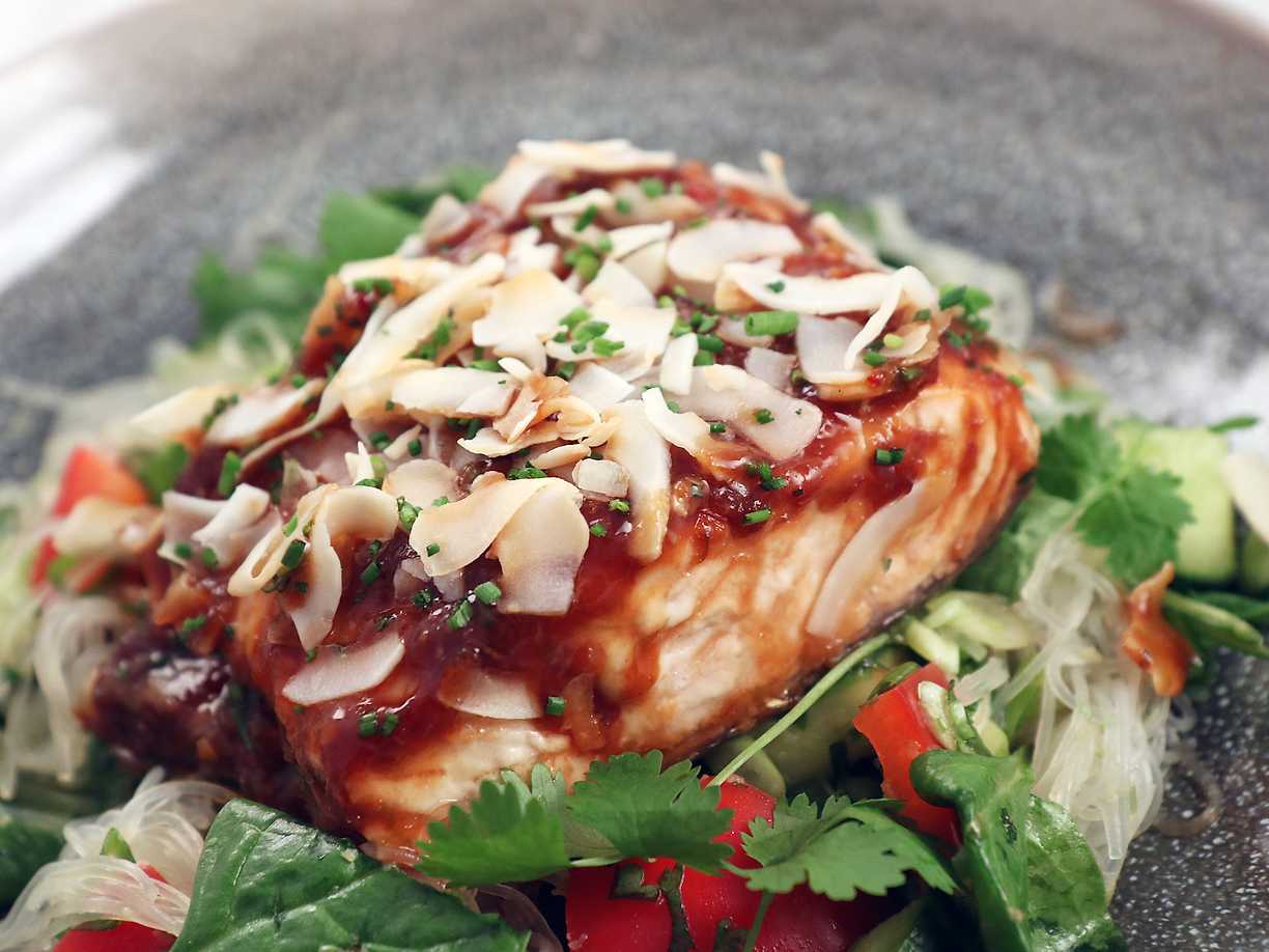 Lågtempad lax med glasnudelsallad