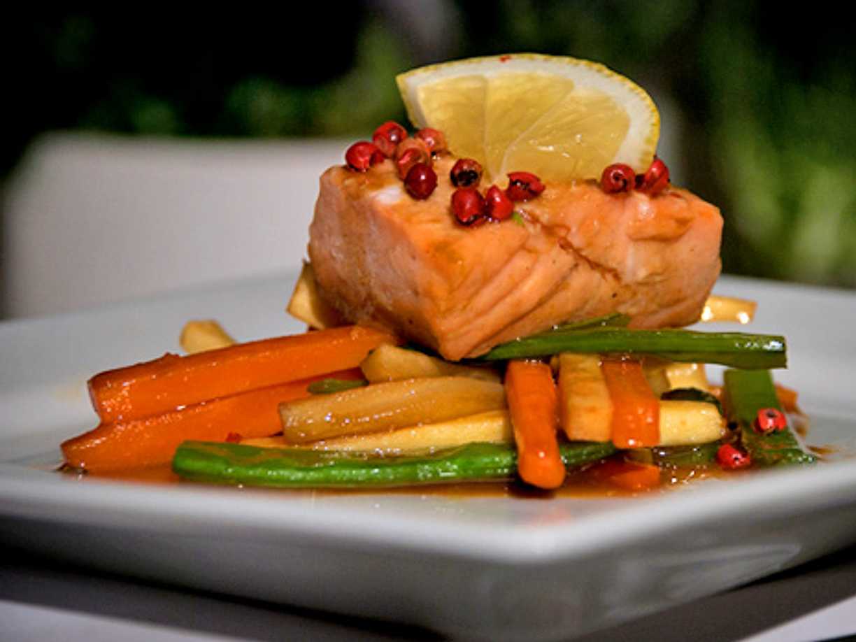 Lax med grönsaksvinägrett