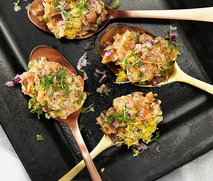 Laxtartar på sked