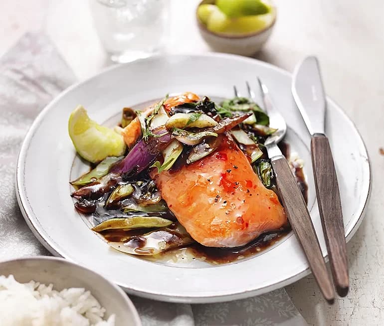 Chilibakad lax med pak choi