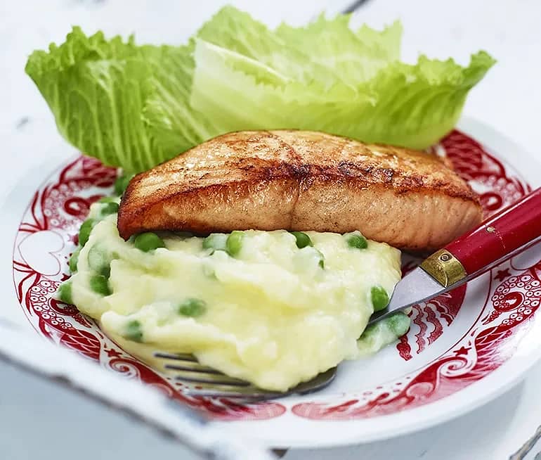 Stekt lax med ärtmos