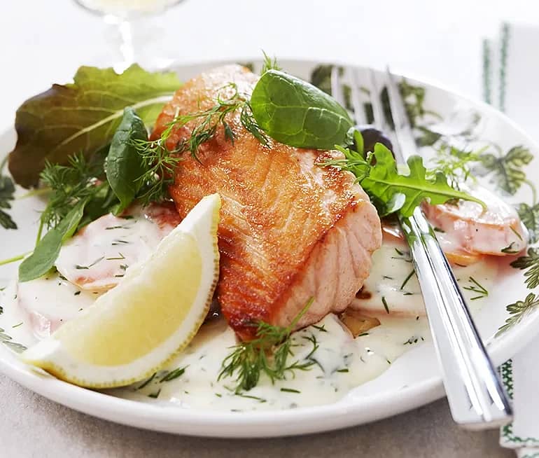Stekt lax med dill- och senapssås