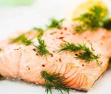 Lax med örtgrönt täcke