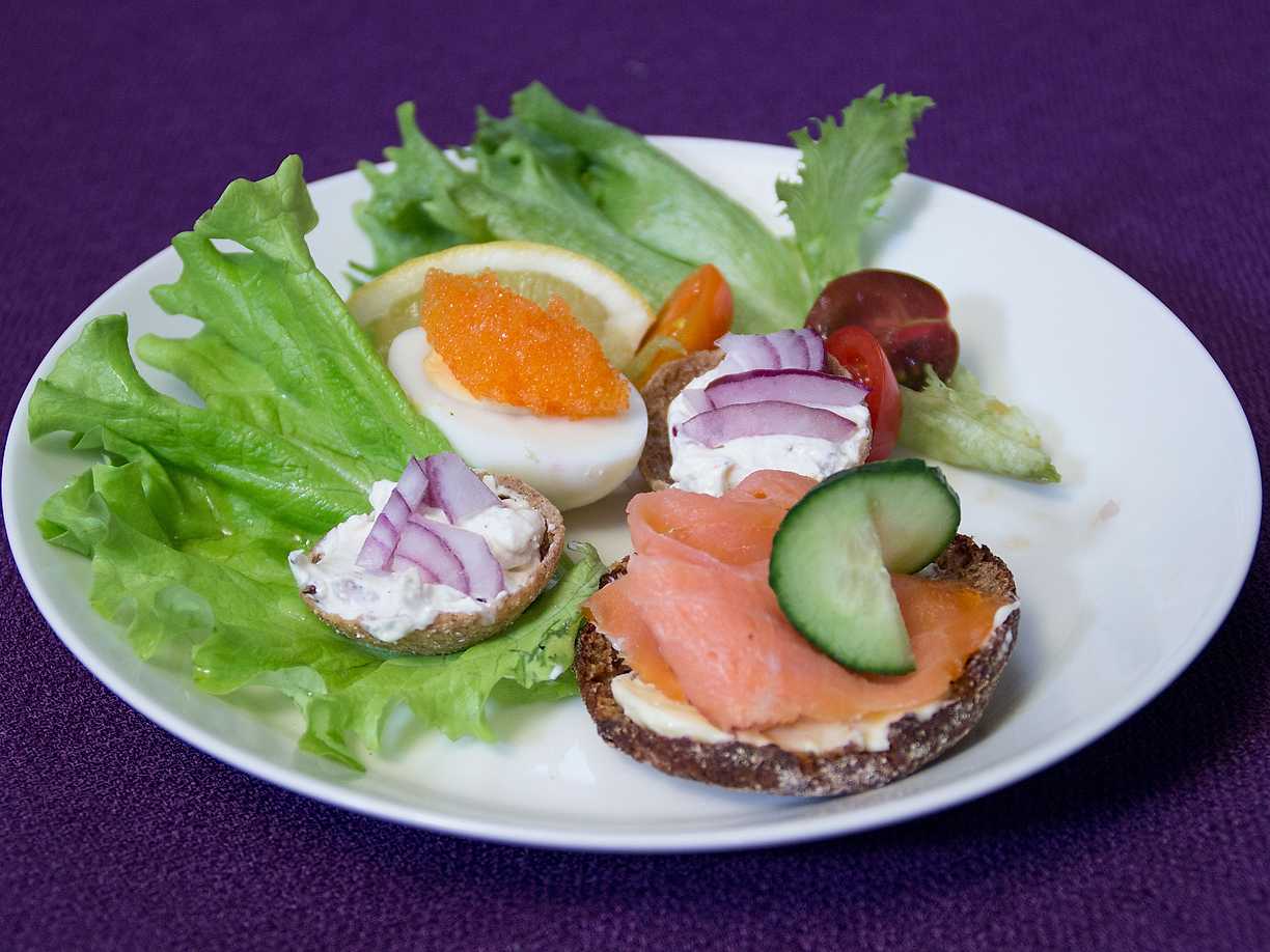 Förrättssandwich med lax, räkor och rom