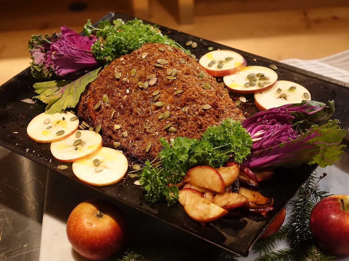 Ugnsbakad lax med pinje- och örttäcke