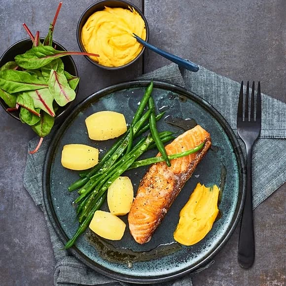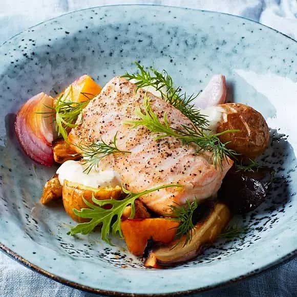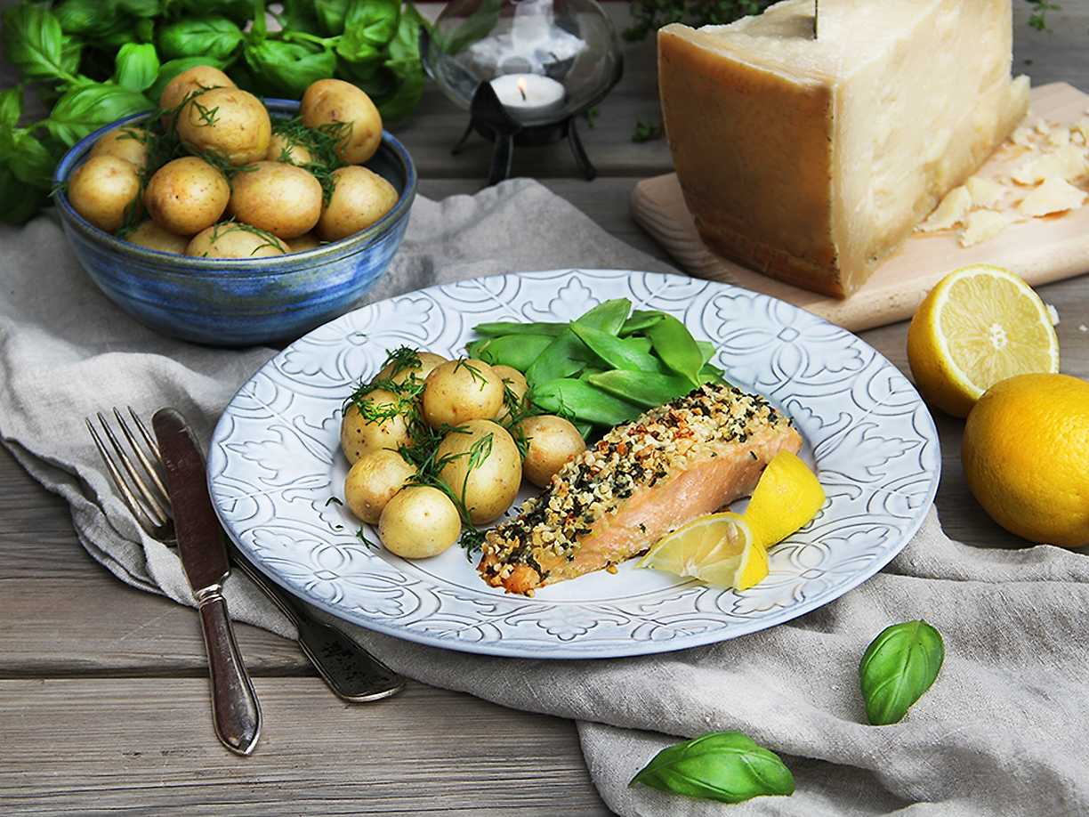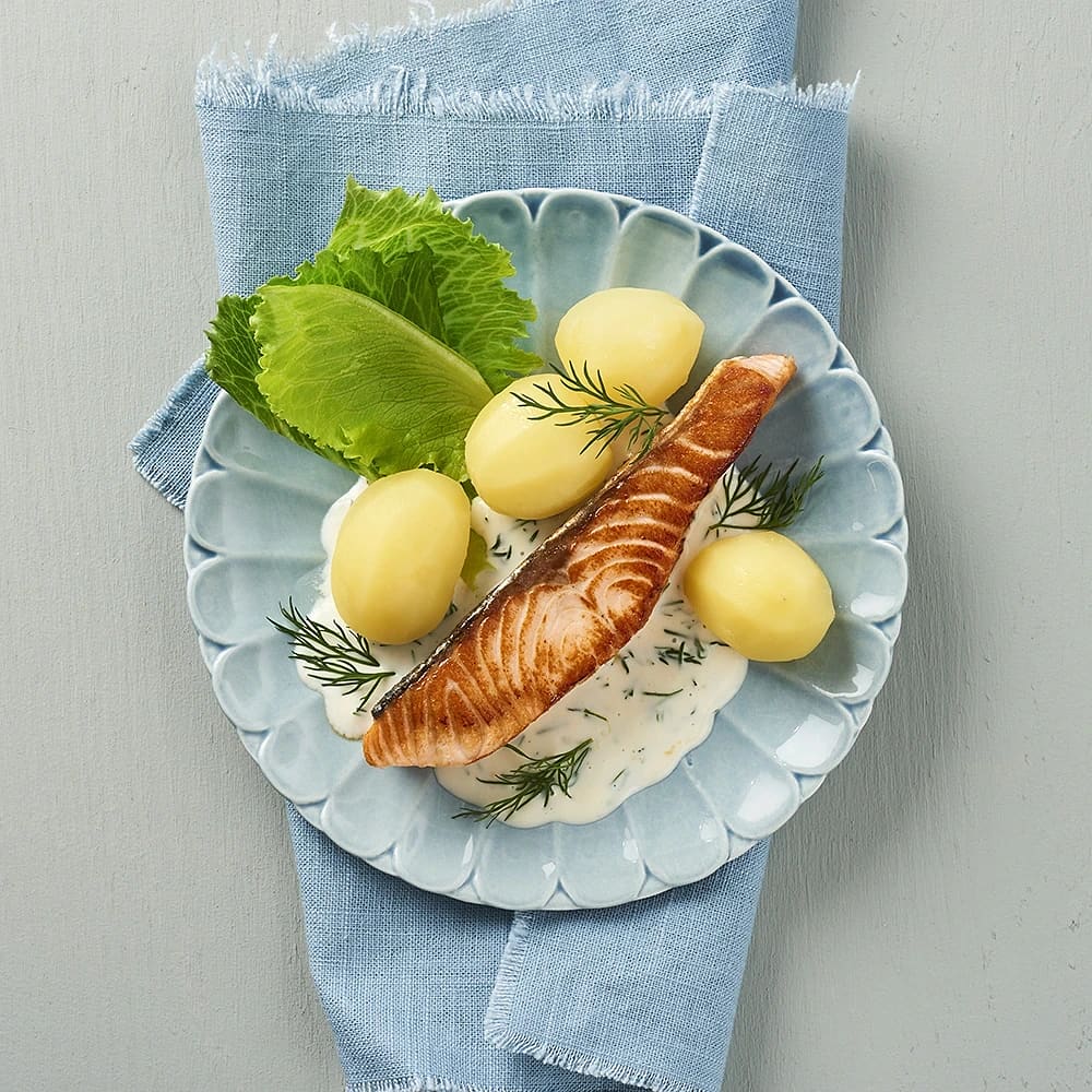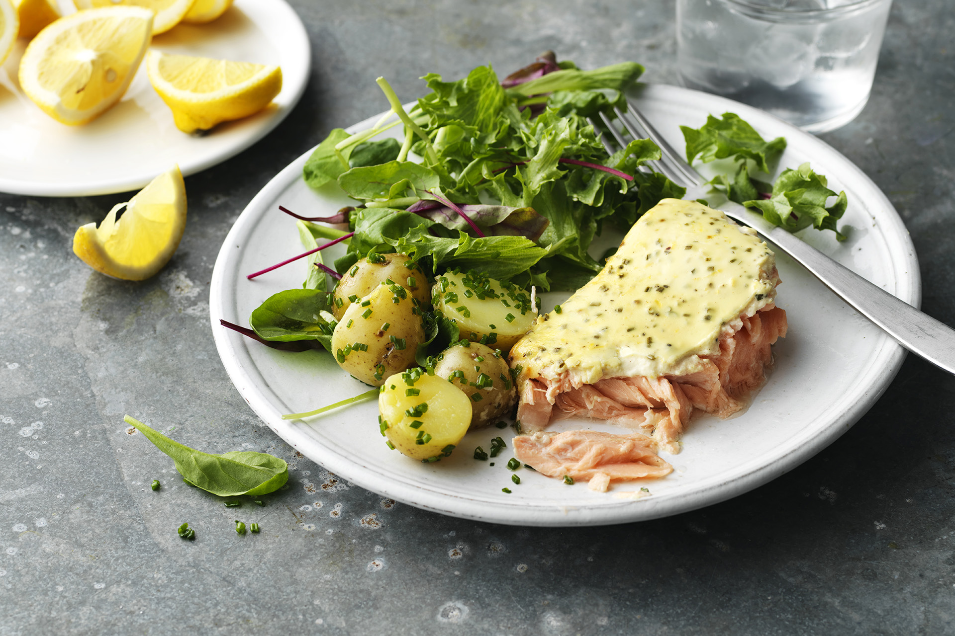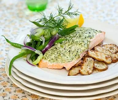 Dillbakad lax med kärlekspotatis och citrongrönt