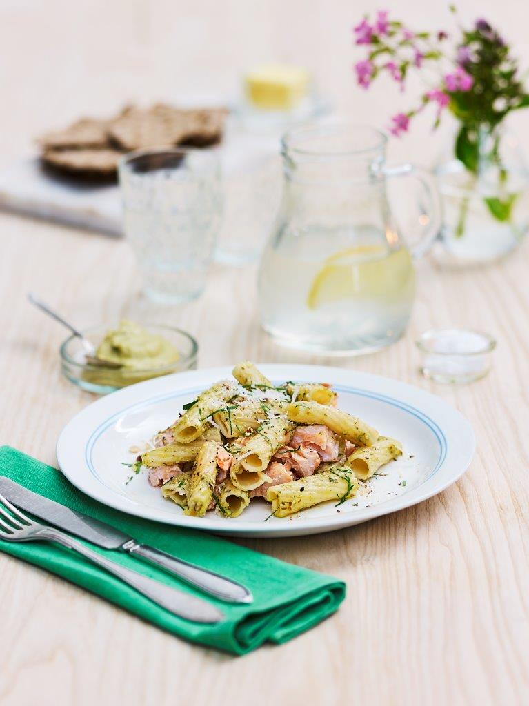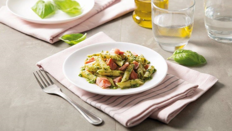 Barilla Penne Rigate med Barilla Pesto alla Genovese och lax