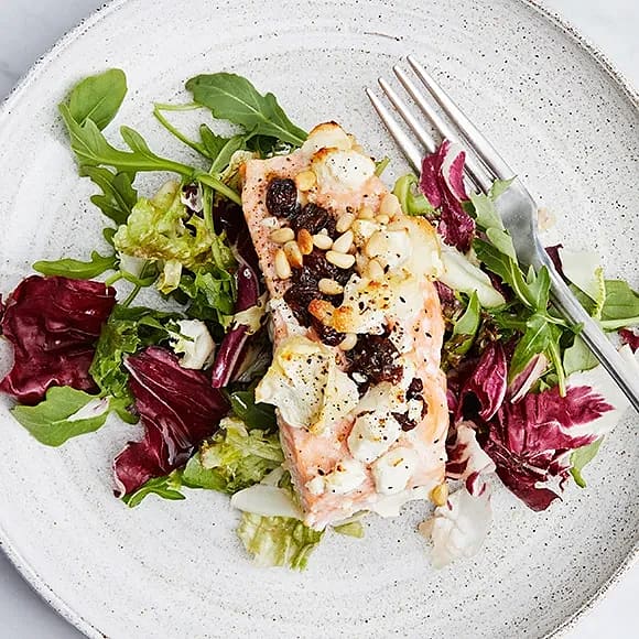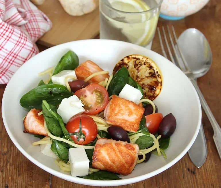 Ljummen sallad med lax och fetaost