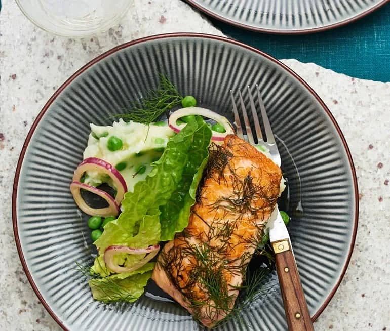 Dillstekt lax med ärtmos