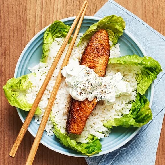 Tandooristekt lax med myntayoghurt