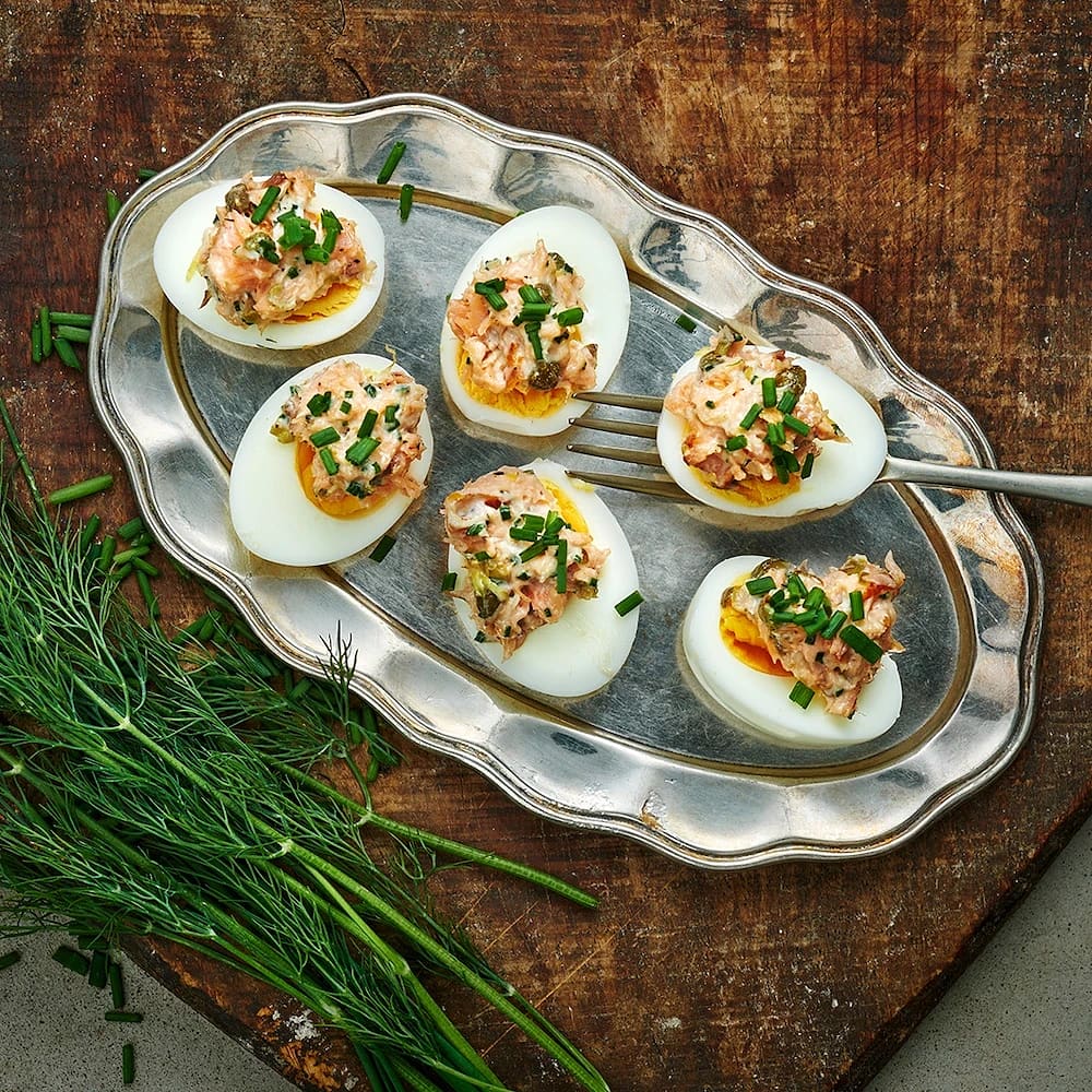 Ägghalvor med lax, kapris och citron