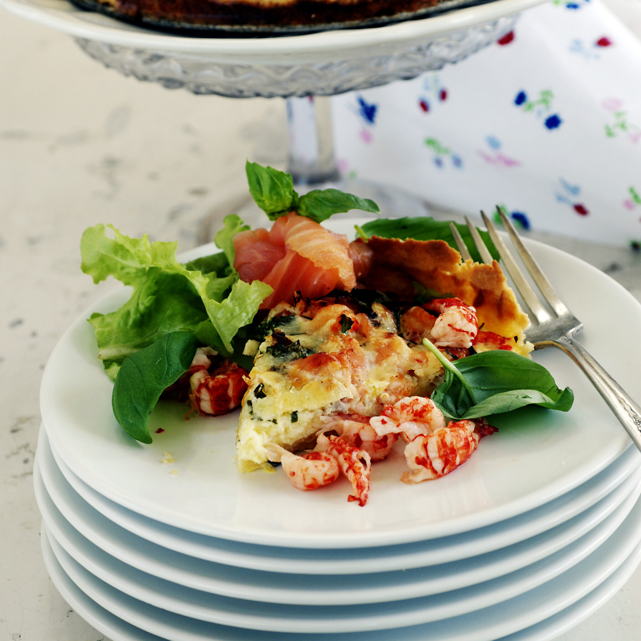 Paj med kräftor, räkor och lax