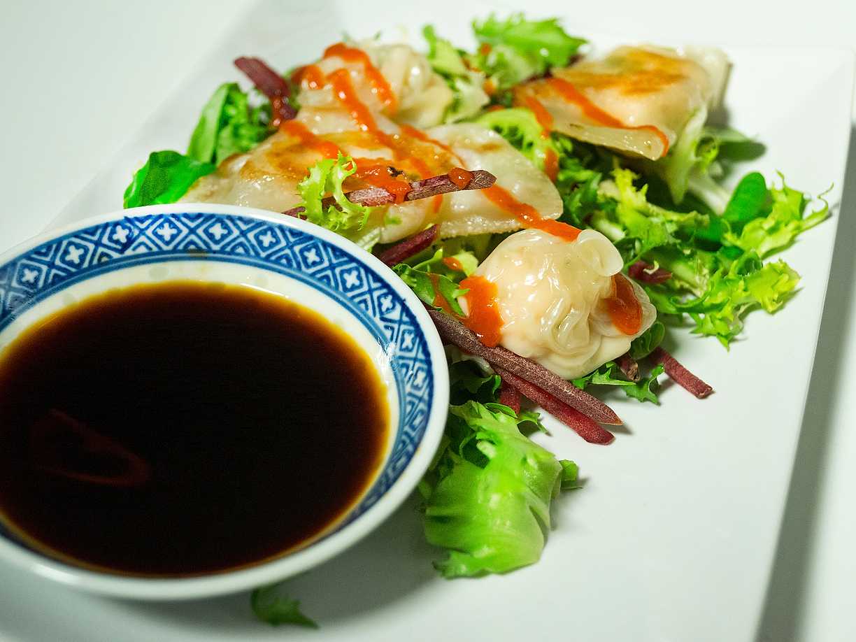 Dumplings med lax och lamm