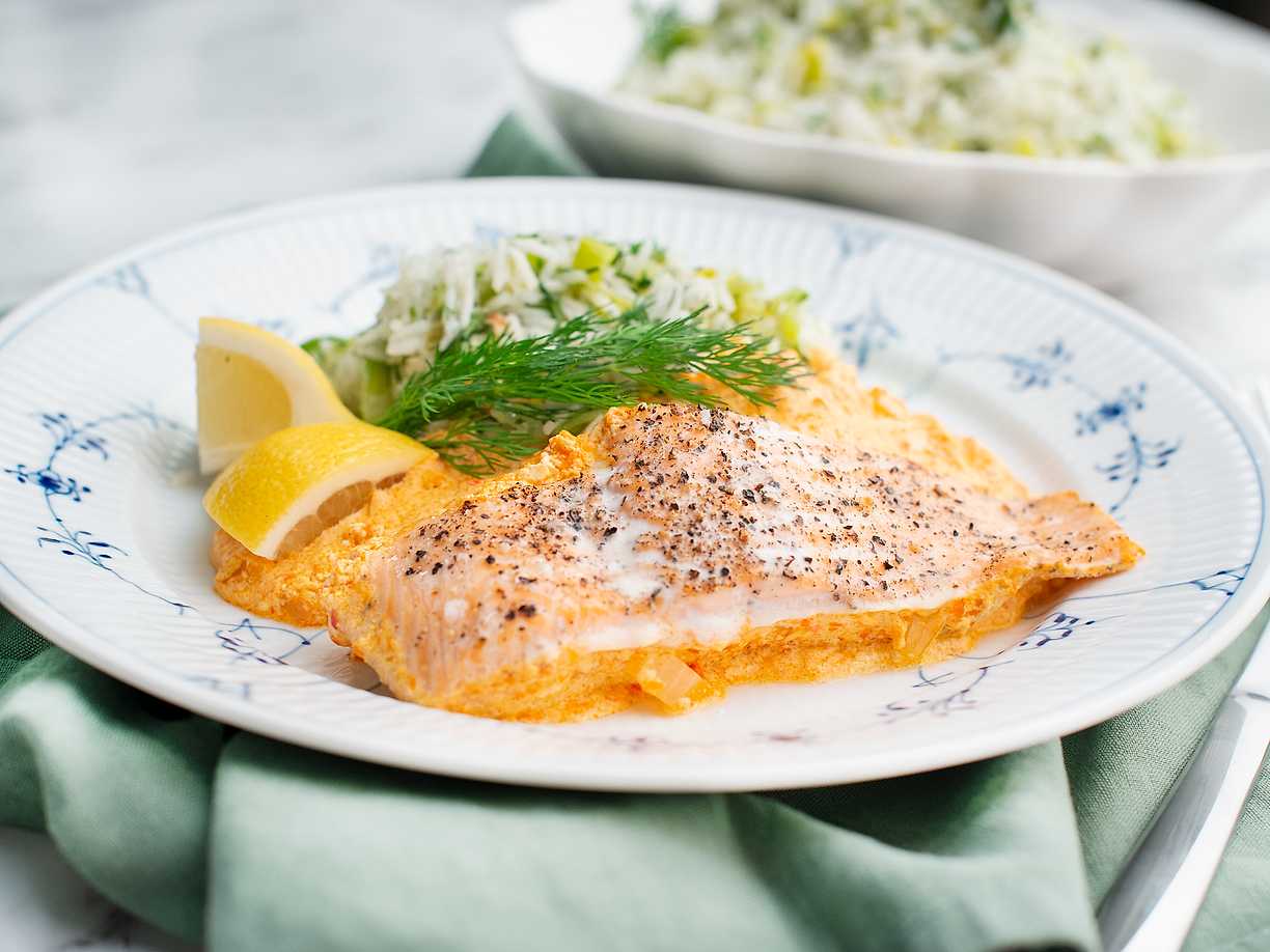 Lax i krämig paprikasås med örtris