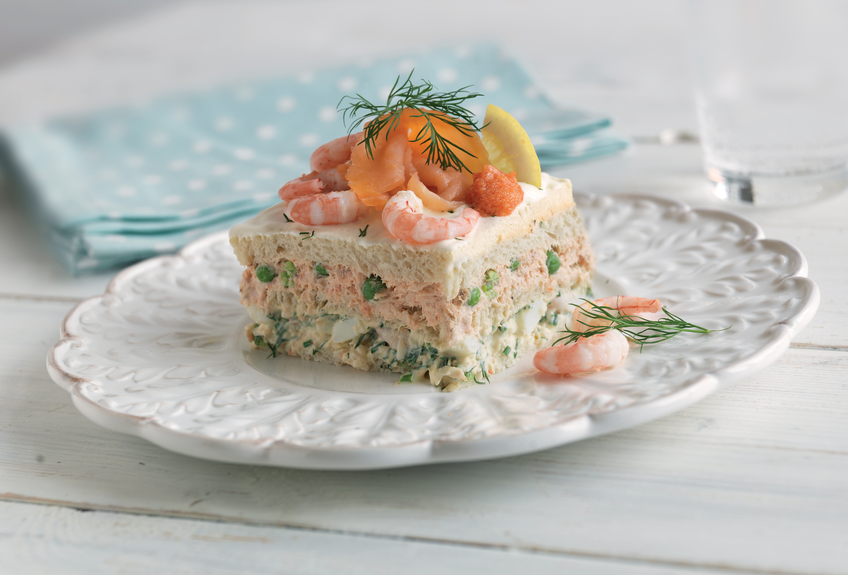 Smörgåstårta med lax och skaldjur