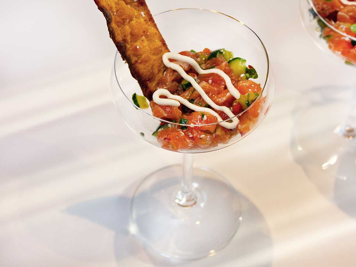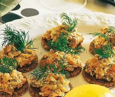 Lax- och kräfttartar på toast