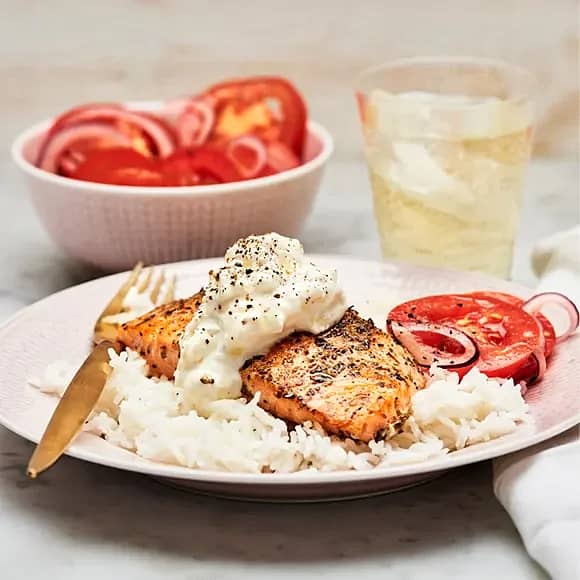 Oreganostekt lax med fetayoghurt
