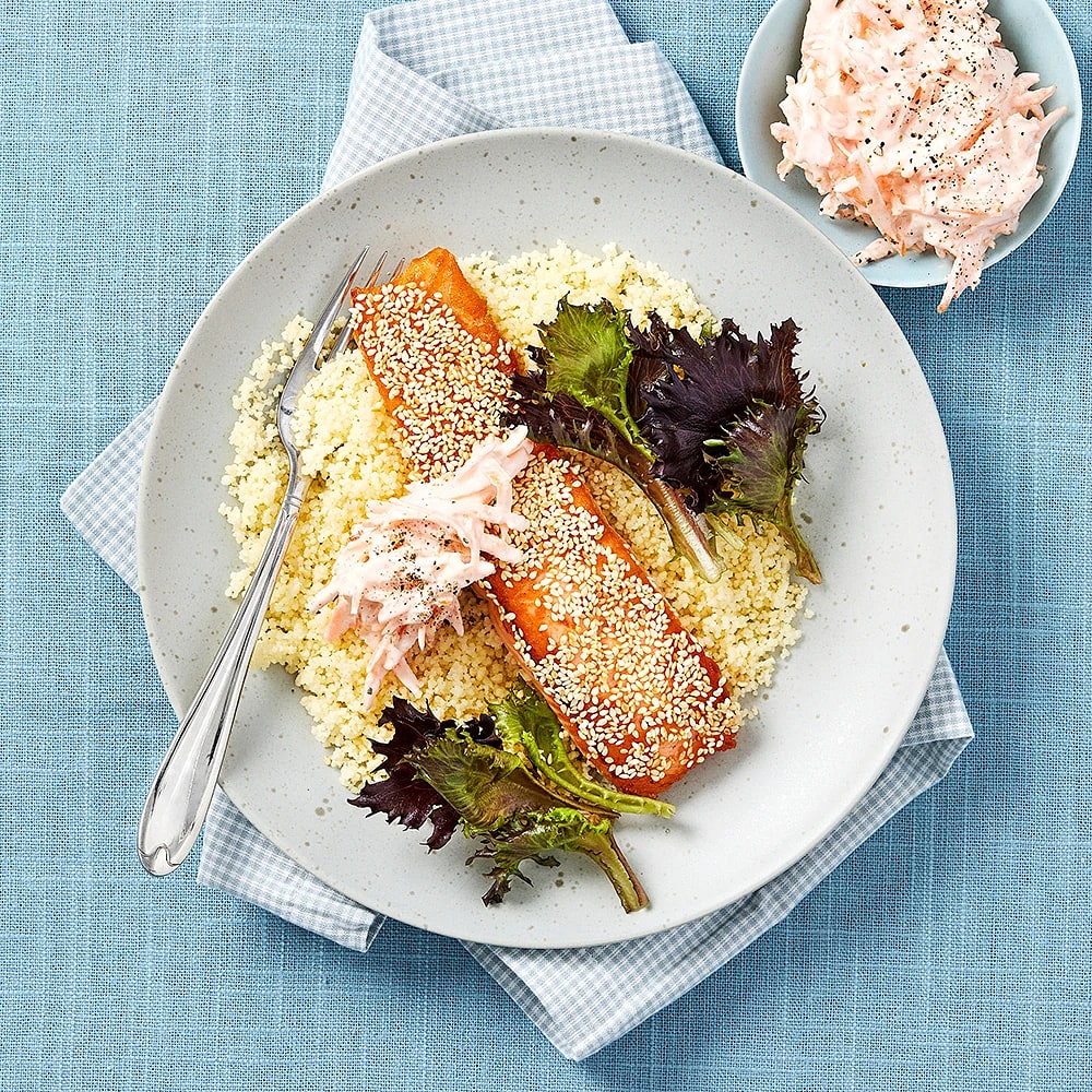 Sesamstekt lax med morotsfil