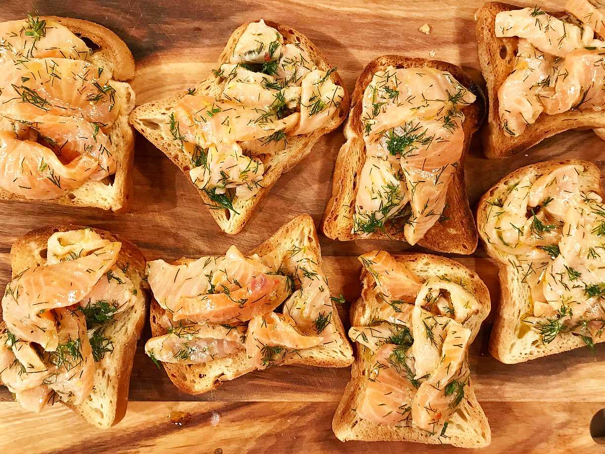 Toast med citrondressad rå lax
