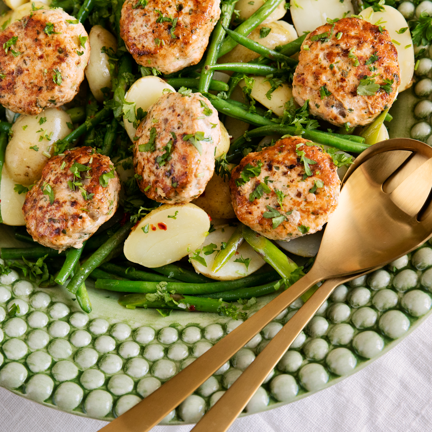 Laxbiffar med potatismos och ärtor