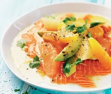 Laxcarpaccio med pomelo och citrusvinägrett