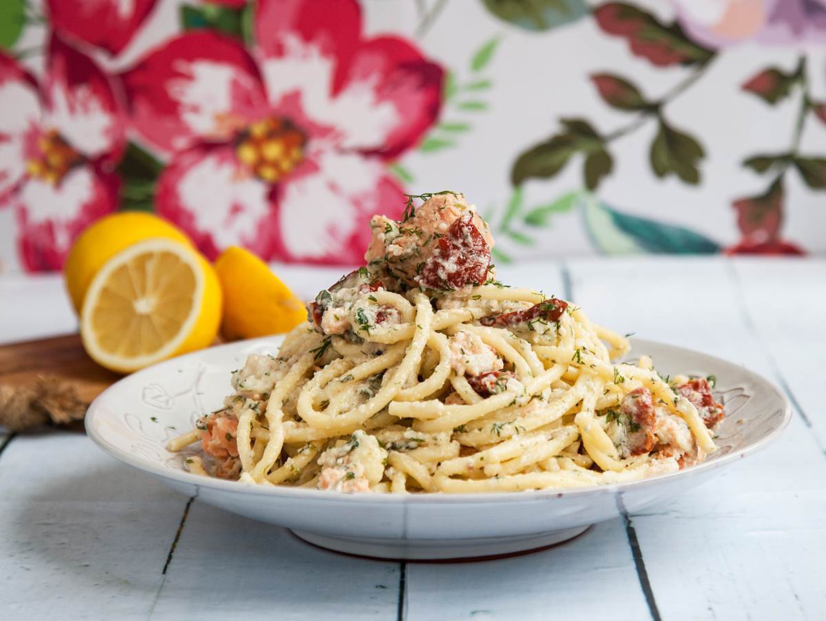 Tinas krämiga laxpasta med blomkål och soltorkad tomat