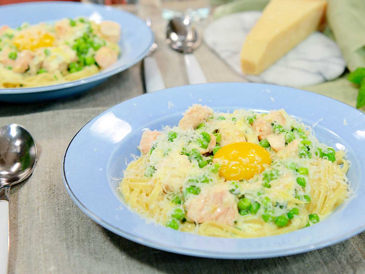 Laxpasta med mynta och ärtor