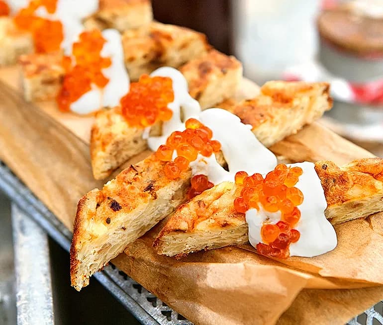 Potatistortilla med rökt yoghurt och laxrom