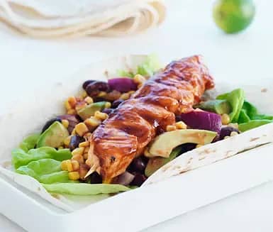 Hickorygrillat laxspett med majs och avokadosalsa