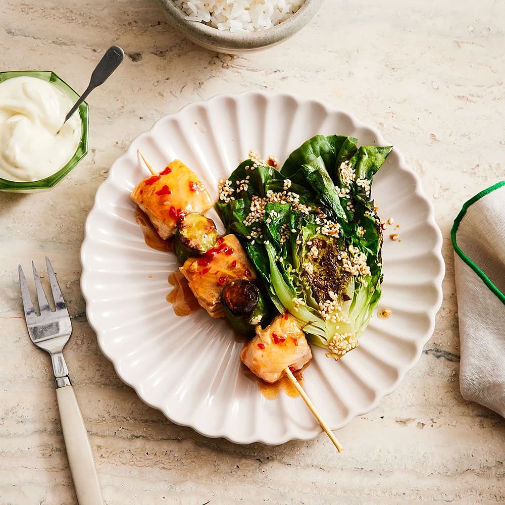 Sweet chiliglacerade laxspett med limeaioli