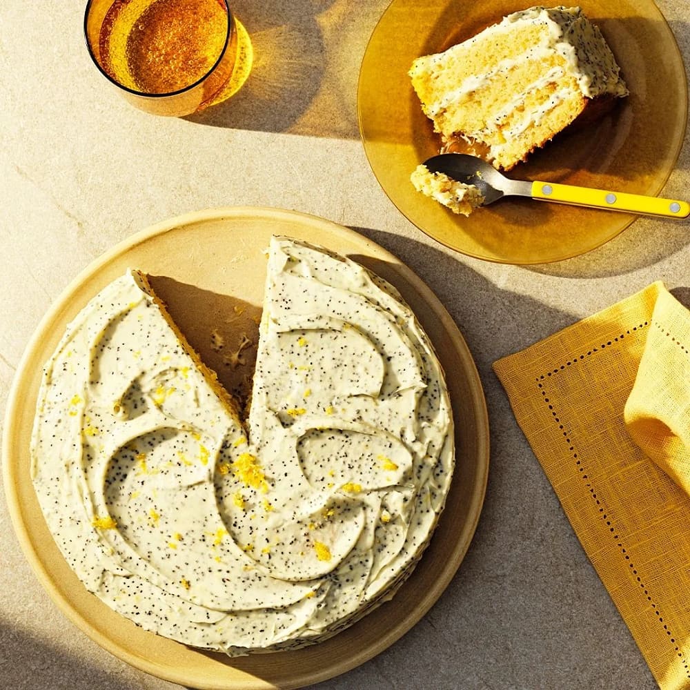Citrontårta med lemon curd och vallmofrosting