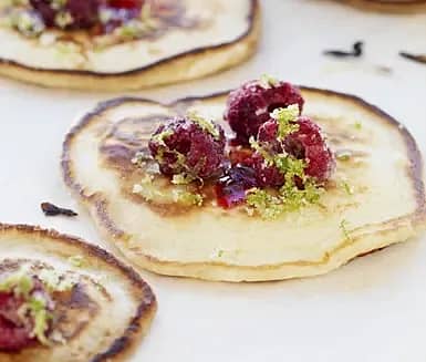 Amerikanska pannkakor med hallon och lime