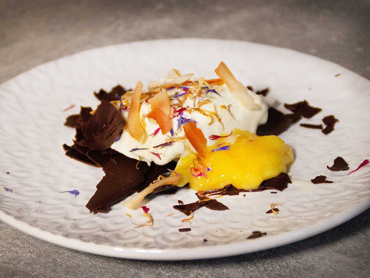 Mango med vaniljglass, kokos och lime