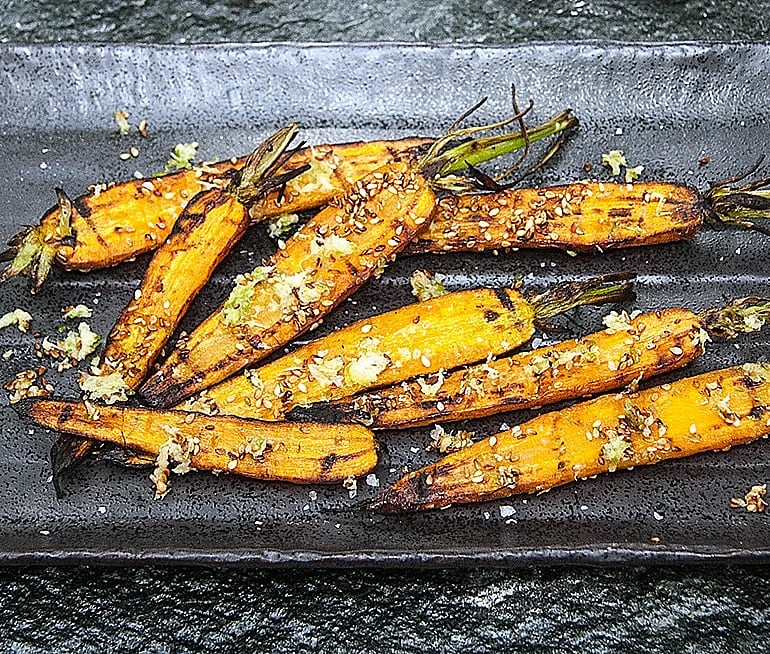 Sesamgrillade morötter med lime och ingefära