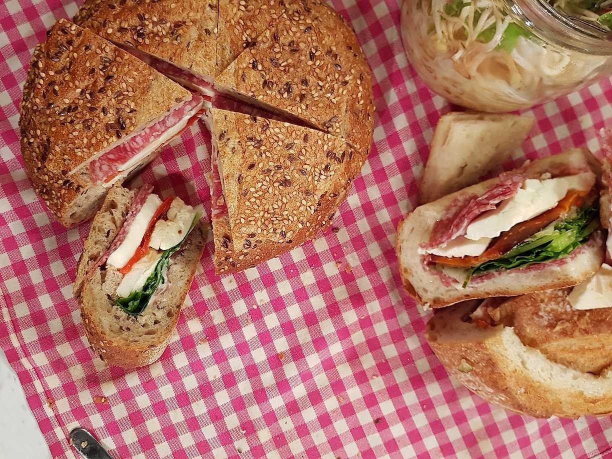 Limpa fylld med mozzarella, paprika och salami