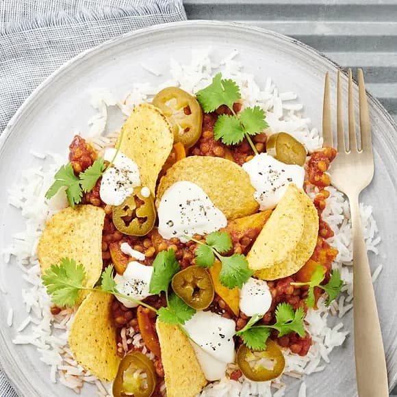 Nachos med linser och koriander