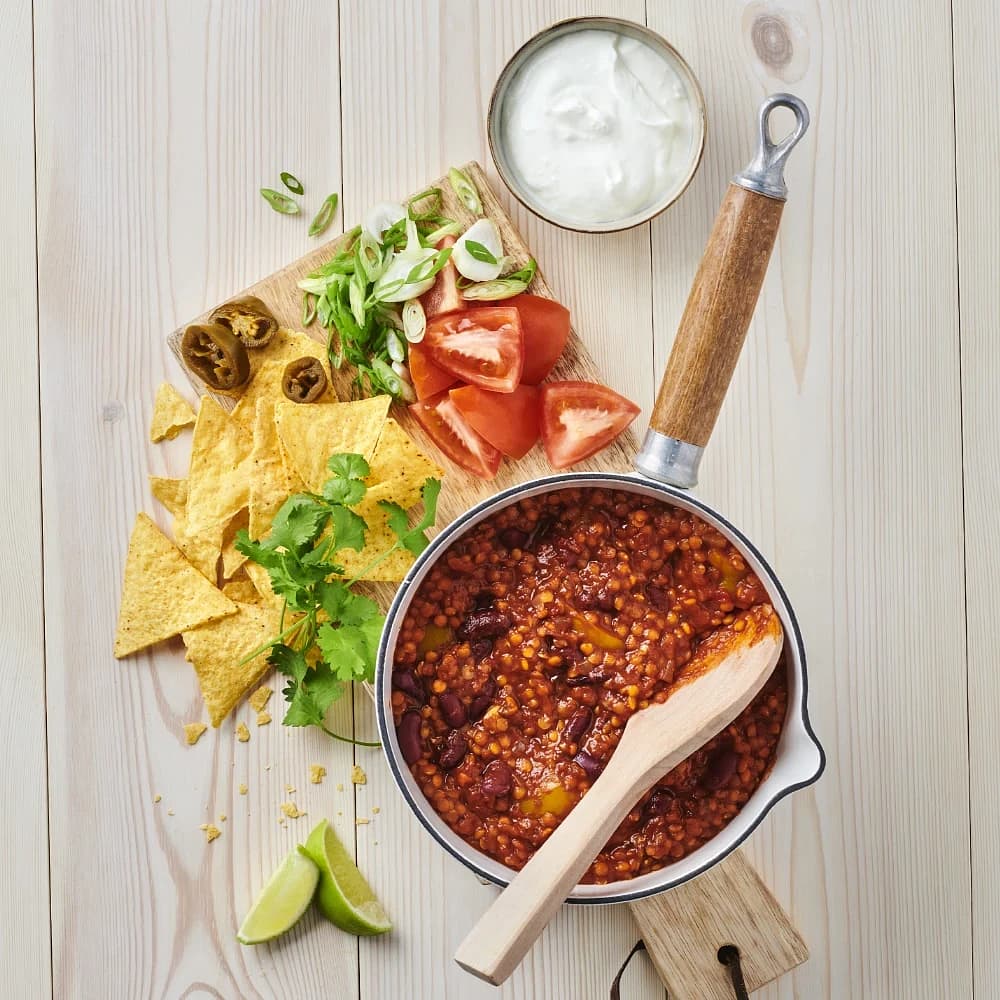 Bönchili med linser och picklad lök