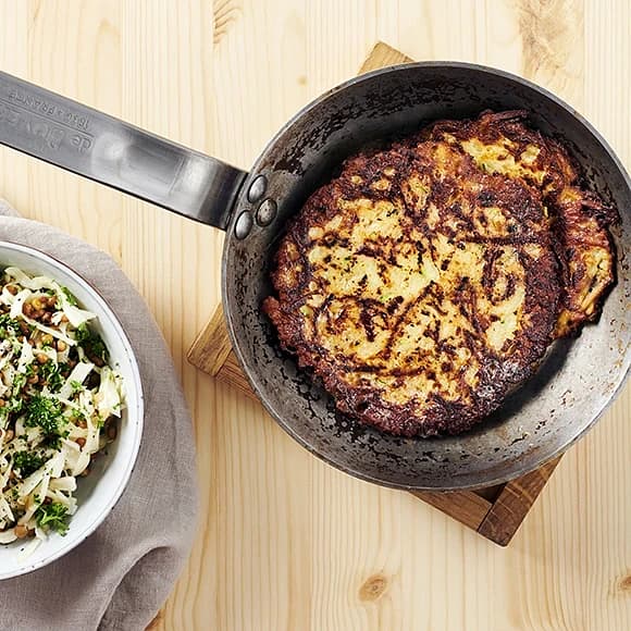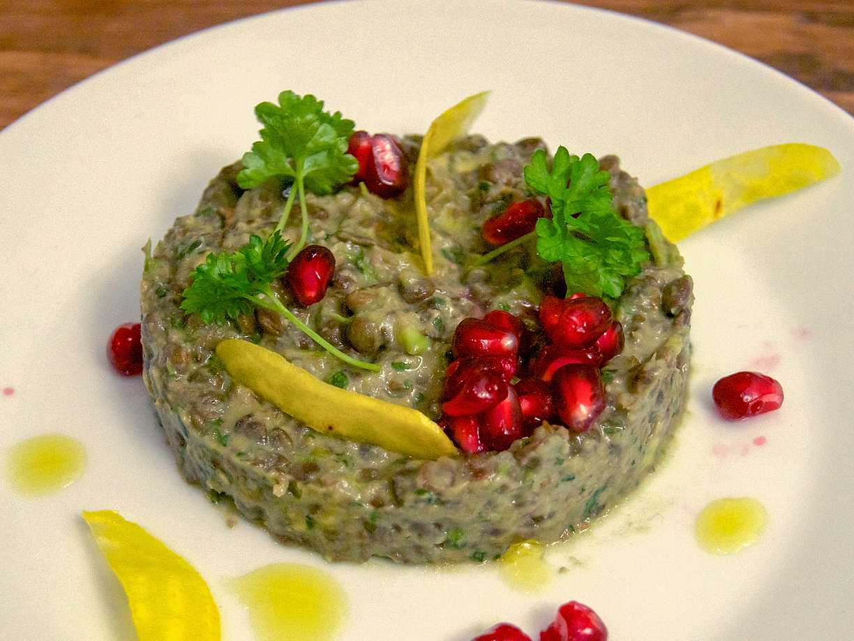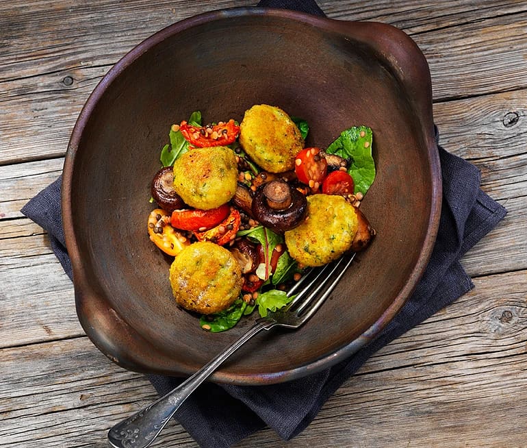 Lins- och fetaostbiffar med gräslök och tomatsallad