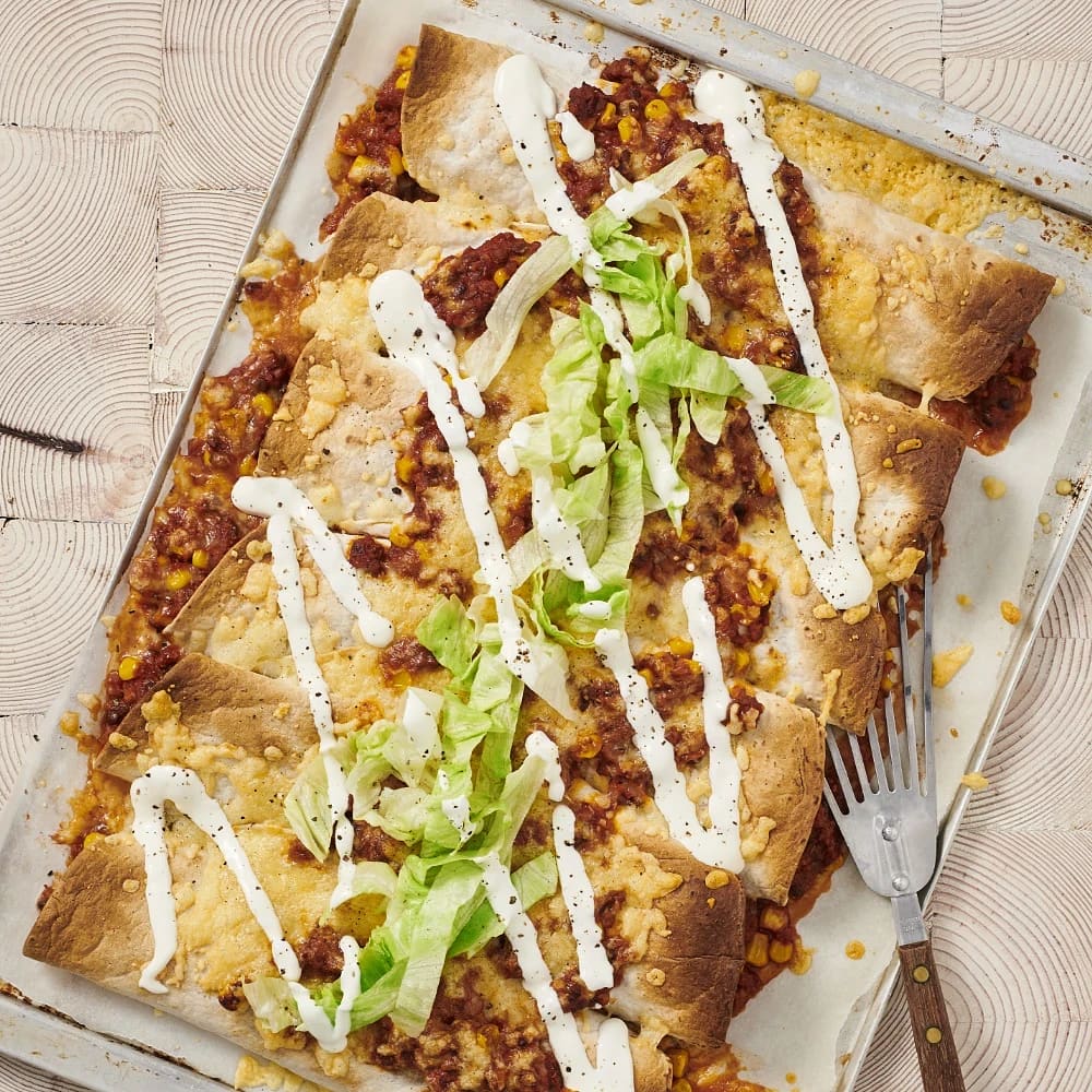 Allt på en plåt – ugnsrostad potatis med linser och fetaost