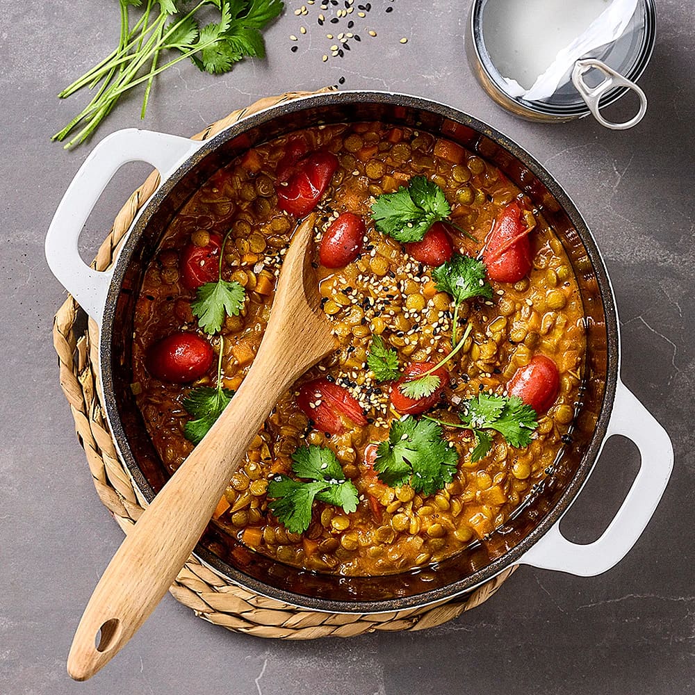 Krämig linsgryta med curry och kokosmjölk