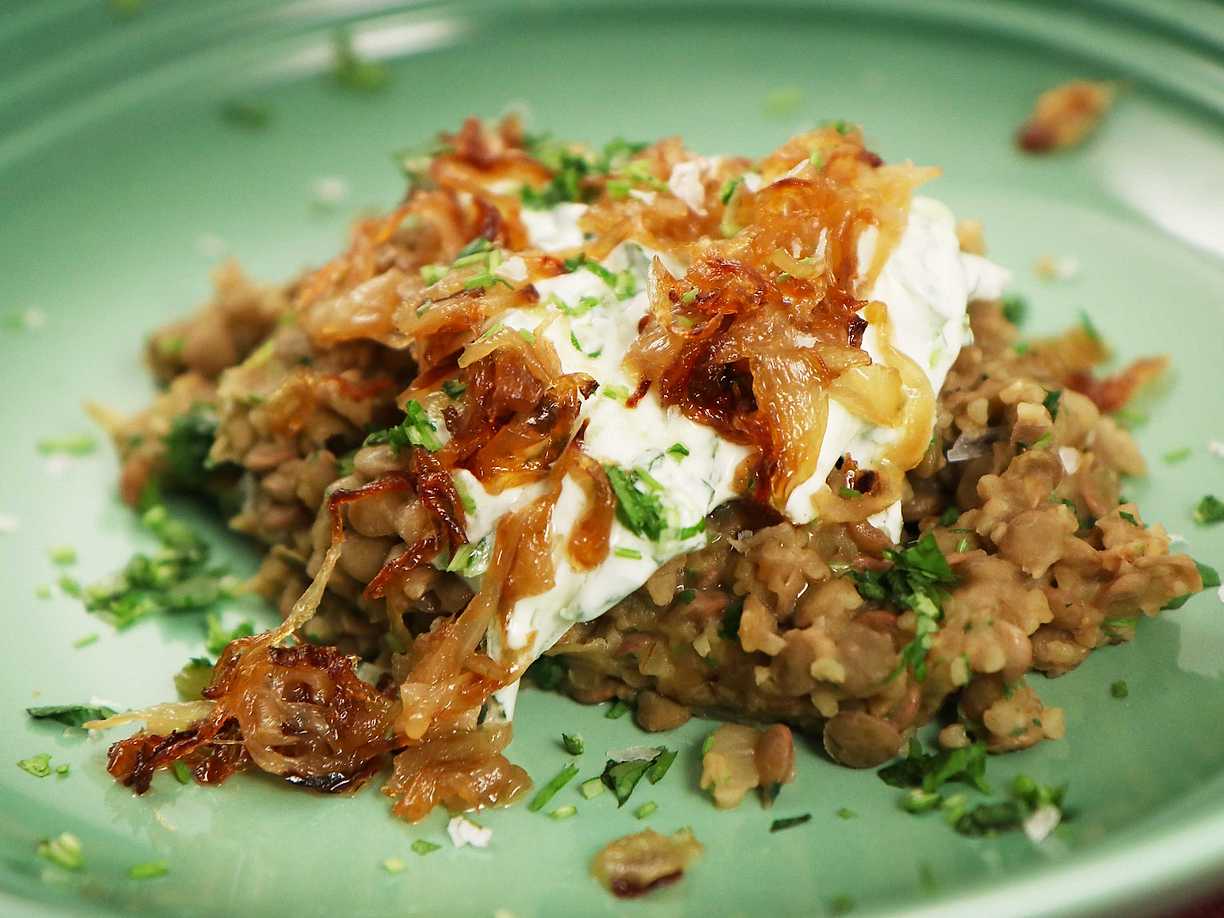 Mujaddara med tsatsiki - Nidals linsgryta