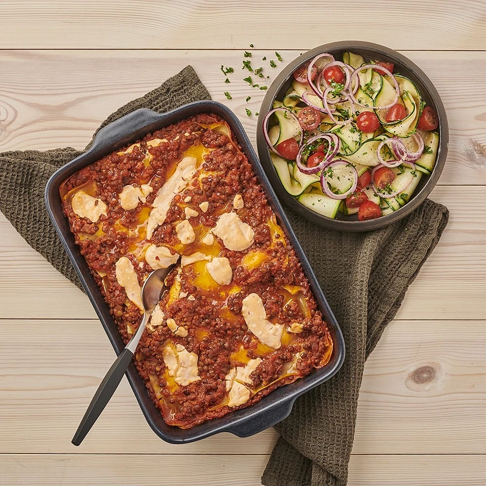 Linslasagne med zucchinisallad