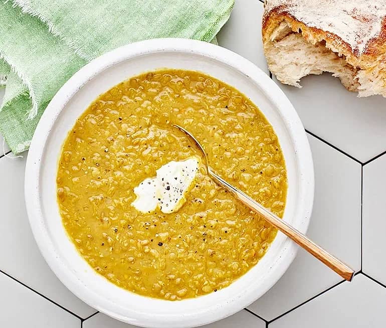 Röd linssoppa med citron och kryddsmör