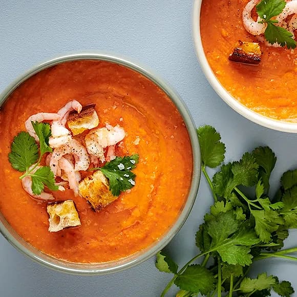 Röd linssoppa med räkor