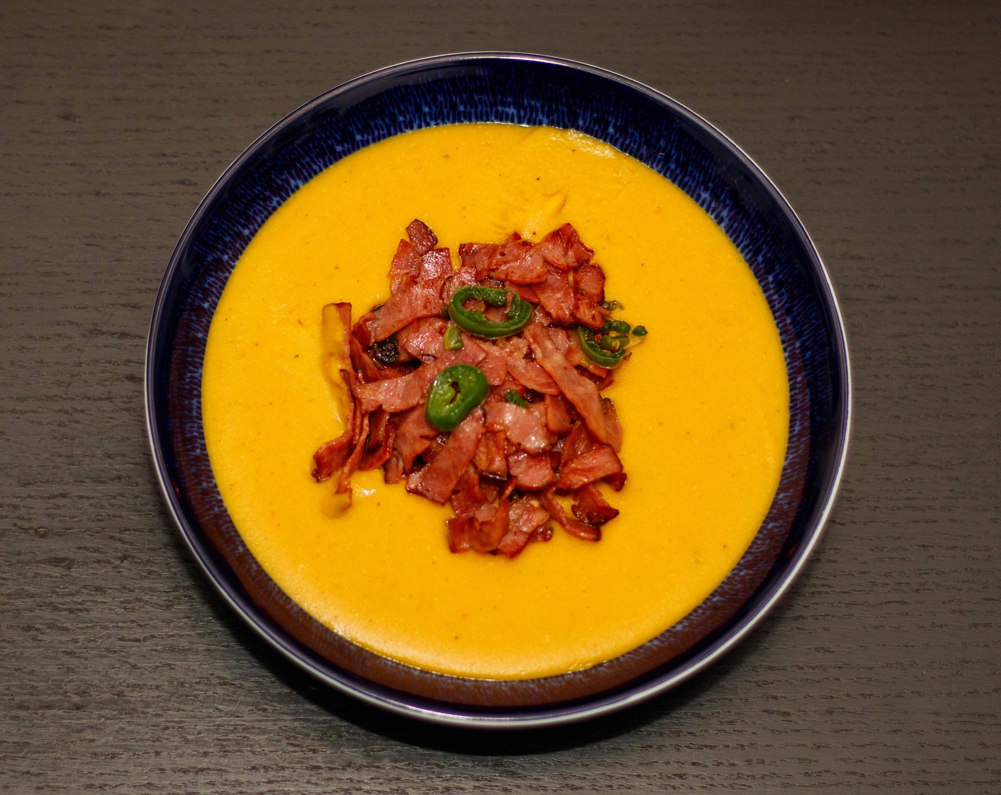 Linssoppa med kalkonbacon och jalapenos