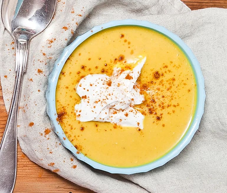 Linssoppa med vitlöksyoghurt
