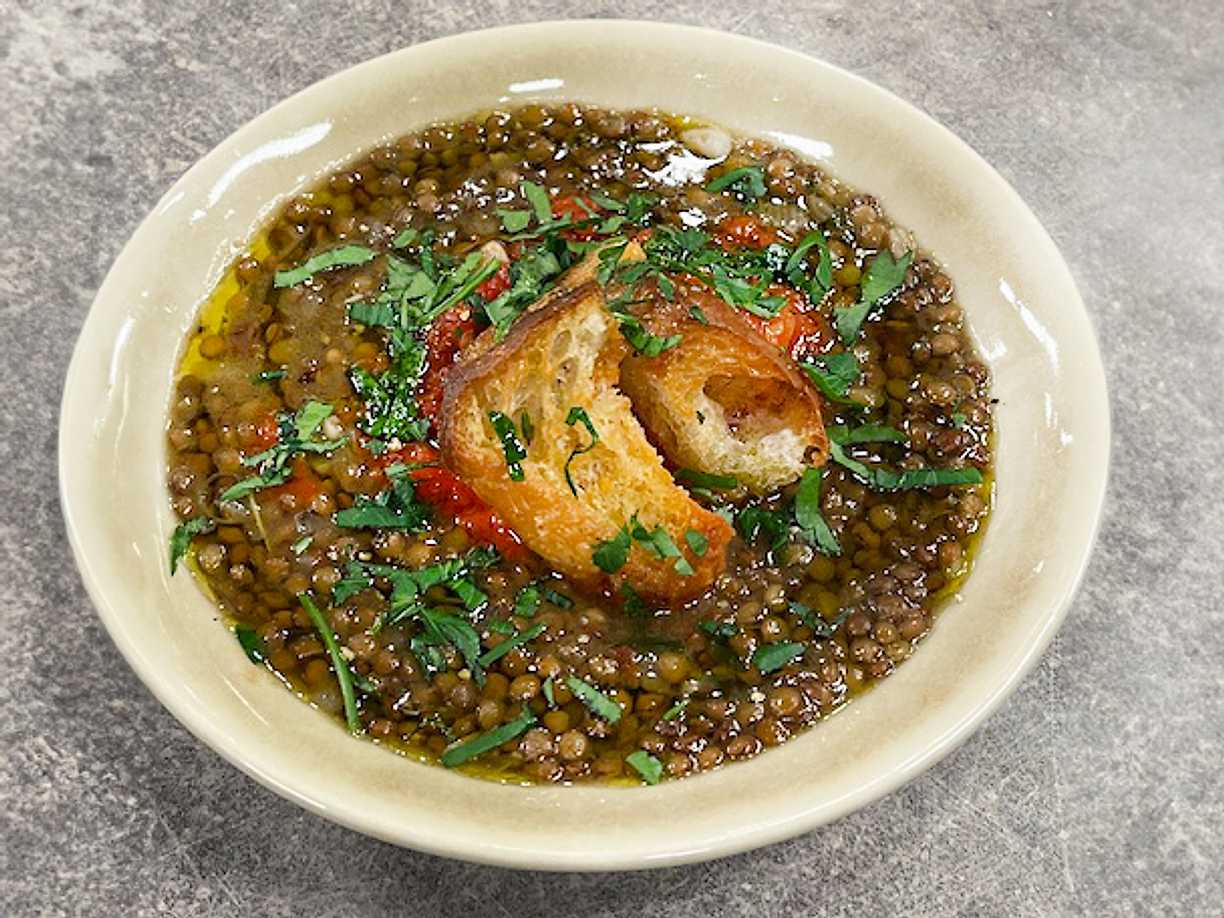 Grön linssoppa med mjukt bröd