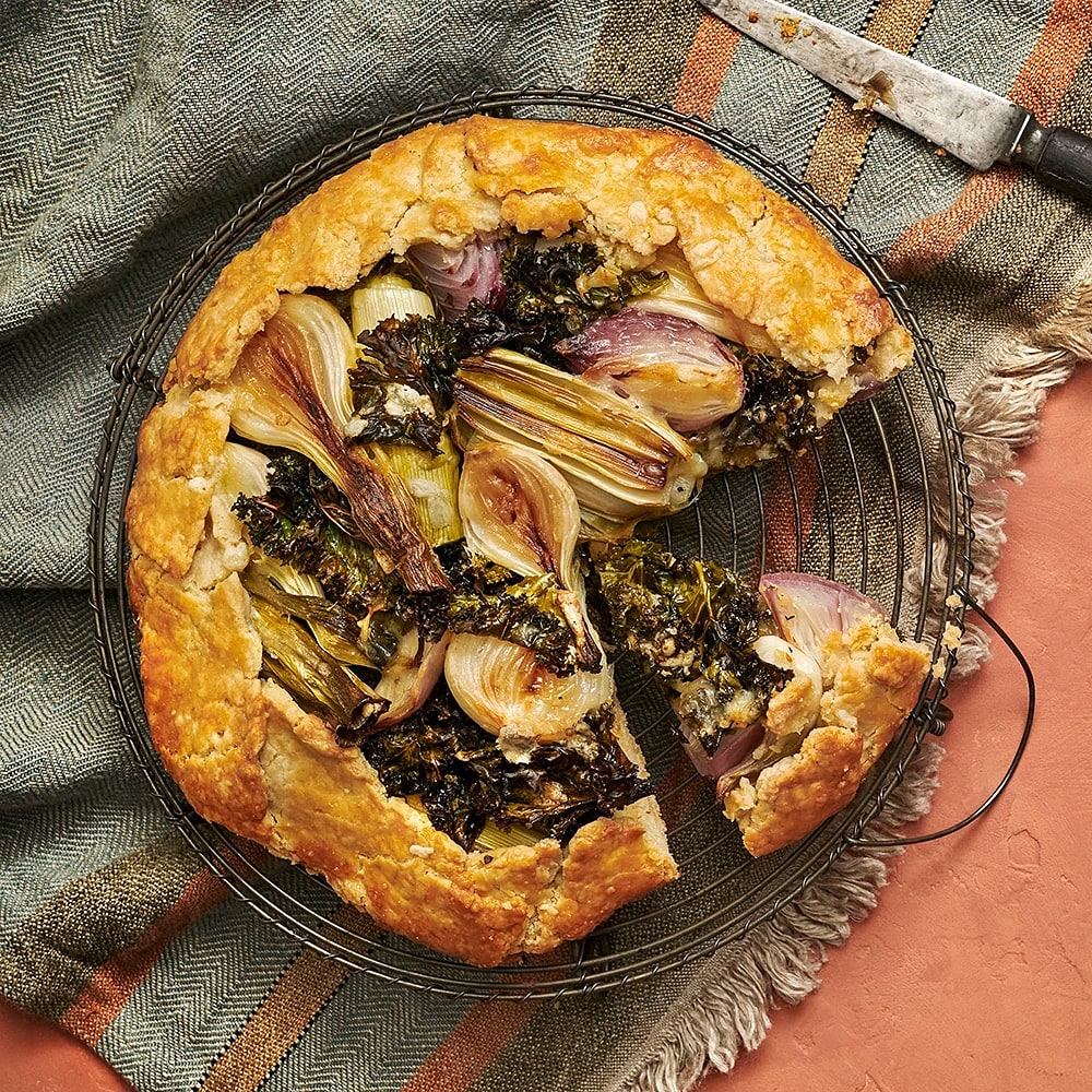 Svartkålssallad med vit bönkräm, brynt lök och krispigt äpple
