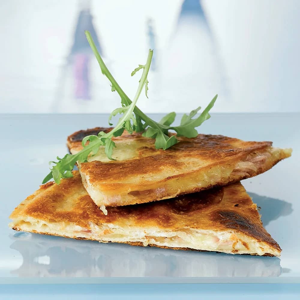 Ölfriterad halloumi med rotselleripuré och picklad lök