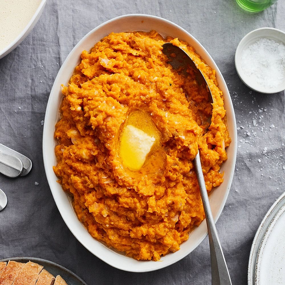 Bakad rotselleri med ansjovismajonnäs och rostad lök